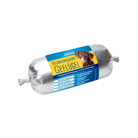 Die ARAS PUR Wurst eignet sich auch bestens als Alternative zu BARF. Die Wurst enthält alle natürlich vorkommenden Vitamine. Der sorgfältige Einsatz ausgewählter, hochwertiger Rohstoffe sowie die schonende Zubereitung der Hundewürste sorgen für einen optimalen Nährwertaufschluss und damit für eine optimierte Bedarfsmenge Ihres Hundes. Durch die schonende Zubereitung (Vitamin-Schonverfahren) kann eine ausreichende Vitaminversorgung garantiert werden. Es wird keine zusätzliche Kalzium-Quelle (zB. in Form von Eierschalenpulver) benötigt.