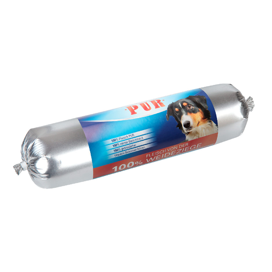 Die herzhafte Hundewurst ARAS PUR ist ein besonderes Fleischvergnügen für Ihren Hund! Die Wurst in der Sorte Weideziege ist 100% sortenrein und enthält 100% schlachtfrisches, feingeschnittenes Fleisch in Lebensmittelqualität – ideal zum mischen mit Gemüse und Kohlenhydraten Ihrer Wahl. Für eine ausgewogene Ernährung empfehlen wir Ihnen eine der zahlreichen Nahrungsergänzungen aus dem Hause ARAS wie z.B. die Bio-Reis-Pops, Gemüse-Obst-Mischung, Carottinos oder rote Beete dazu zumischen.