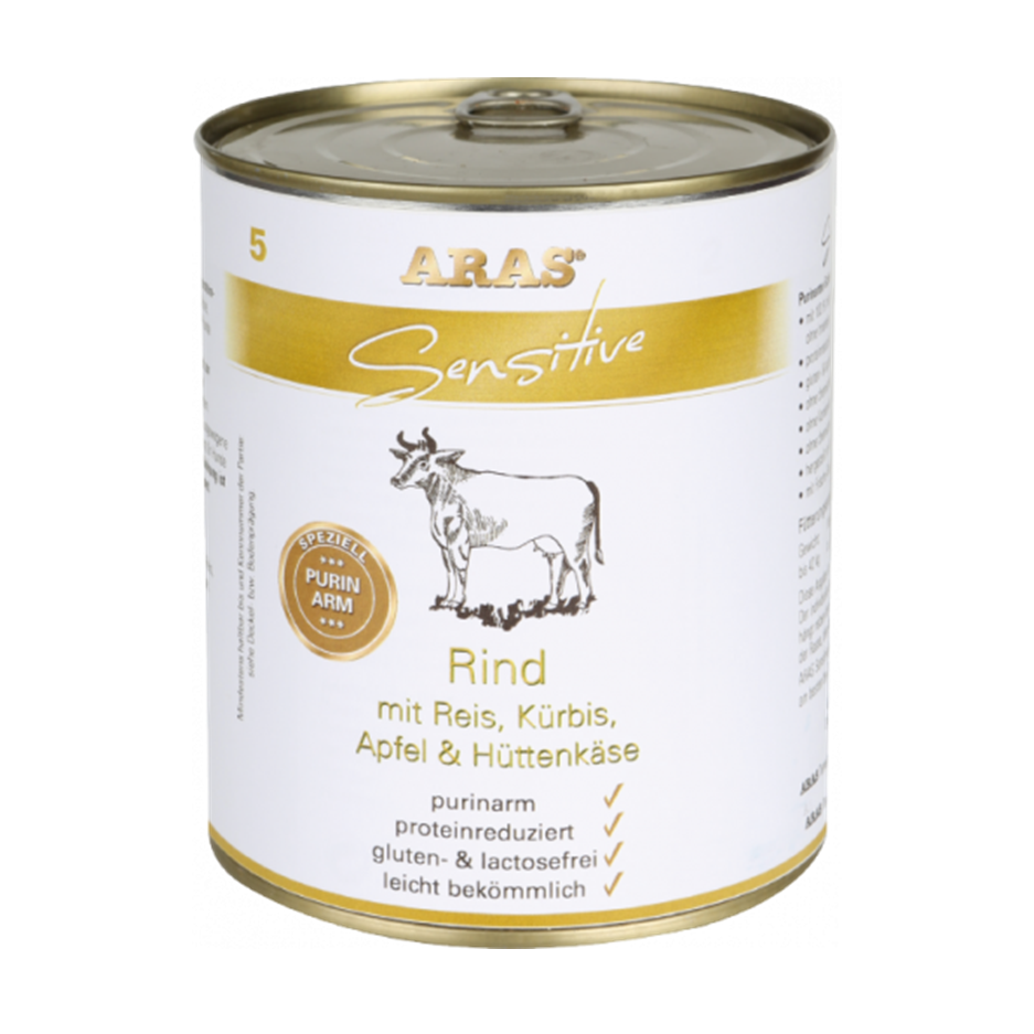 Das ARAS Sensitive Hundefutter mit frischem, magerem Fleisch in Lebensmittelqualität in der Sorte Rind mit Reis, Kürbis, Apfel und Hüttenkäse enthält alle natürlich vorkommenden Vitamine. Durch die schonende Zubereitung (Vitamin-Schonverfahren) kann eine ausreichende Vitaminversorgung garantiert werden. Die 100% frischen Zutaten und der reduzierte Fleischanteil (28% mageres Rindfleisch) sorgen für eine besonders ausgewogene und schmackhafte Ernährung Ihres Hundes.